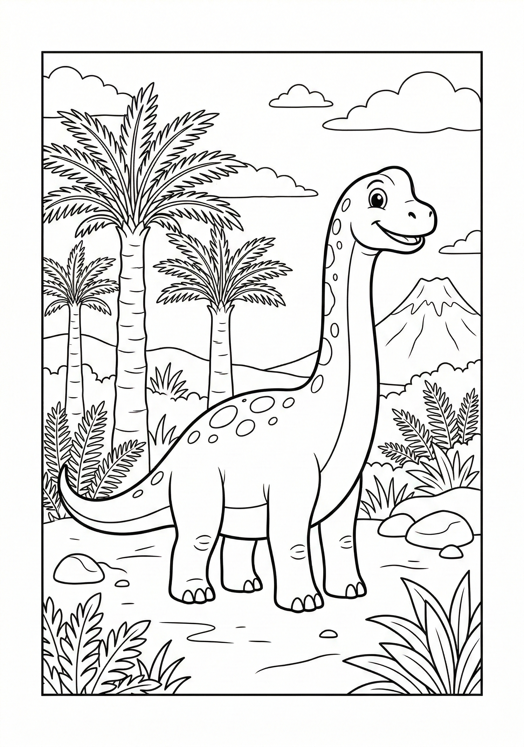 Brachiosaurus with Trees Coloring Page is a free printable coloring page from our Dinosaur Coloring Pages collection. It’s suitable for kids ages 6-8 and can be downloaded as PDF or image directly at home. No account required — just click Download PDF or Download image above.