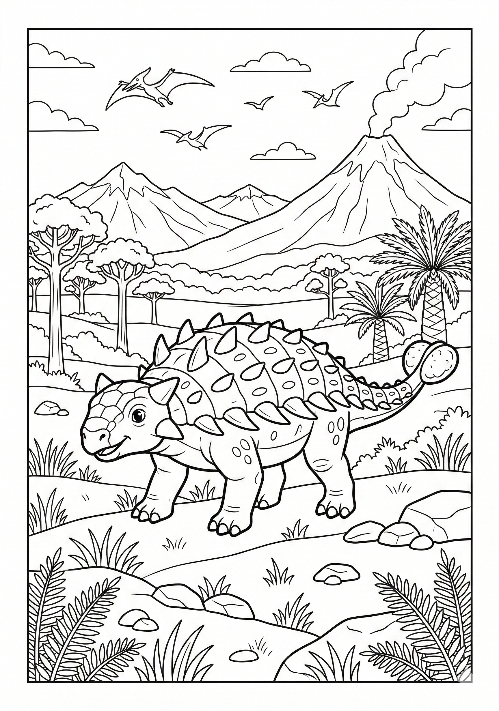 Ankylosaurus on Prehistoric Plains Coloring Page is a free printable coloring page from our Dinosaur Coloring Pages collection. It’s suitable for kids ages 9-10 and can be downloaded as PDF or image directly at home. No account required — just click Download PDF or Download image above.