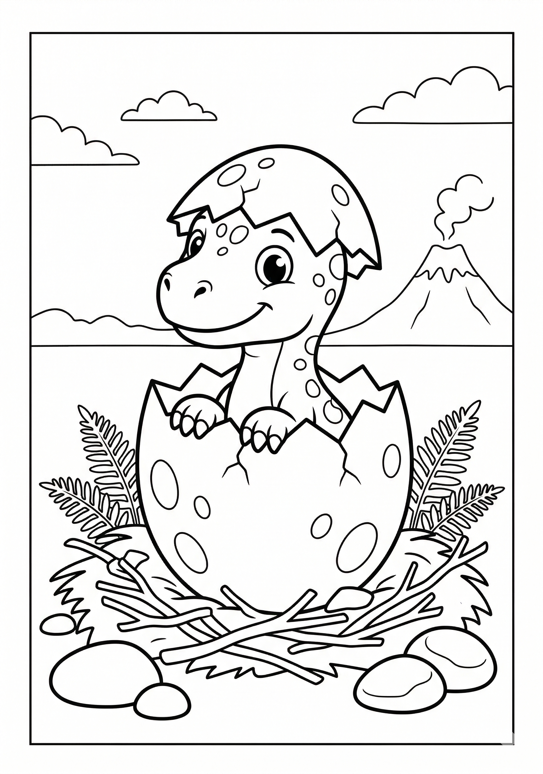 Dinosaur Egg Hatching Coloring Page is a free printable coloring page from our Dinosaur Coloring Pages collection. It’s suitable for kids ages 6-8 and can be downloaded as PDF or image directly at home. No account required — just click Download PDF or Download image above.