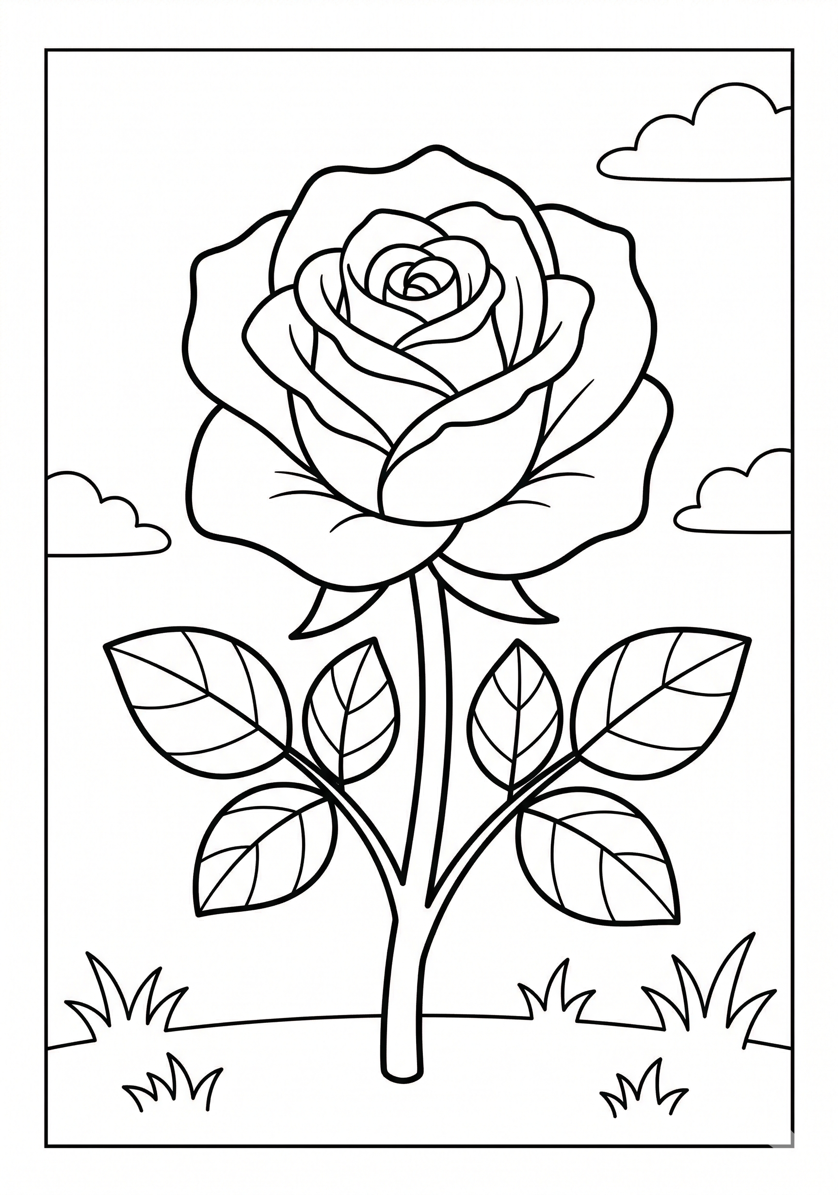 Rose with Leaves Coloring Page is a free printable coloring page from our Flower Coloring Pages collection. It’s suitable for kids ages 6-8 and can be downloaded as PDF or image directly at home. No account required — just click Download PDF or Download image above.