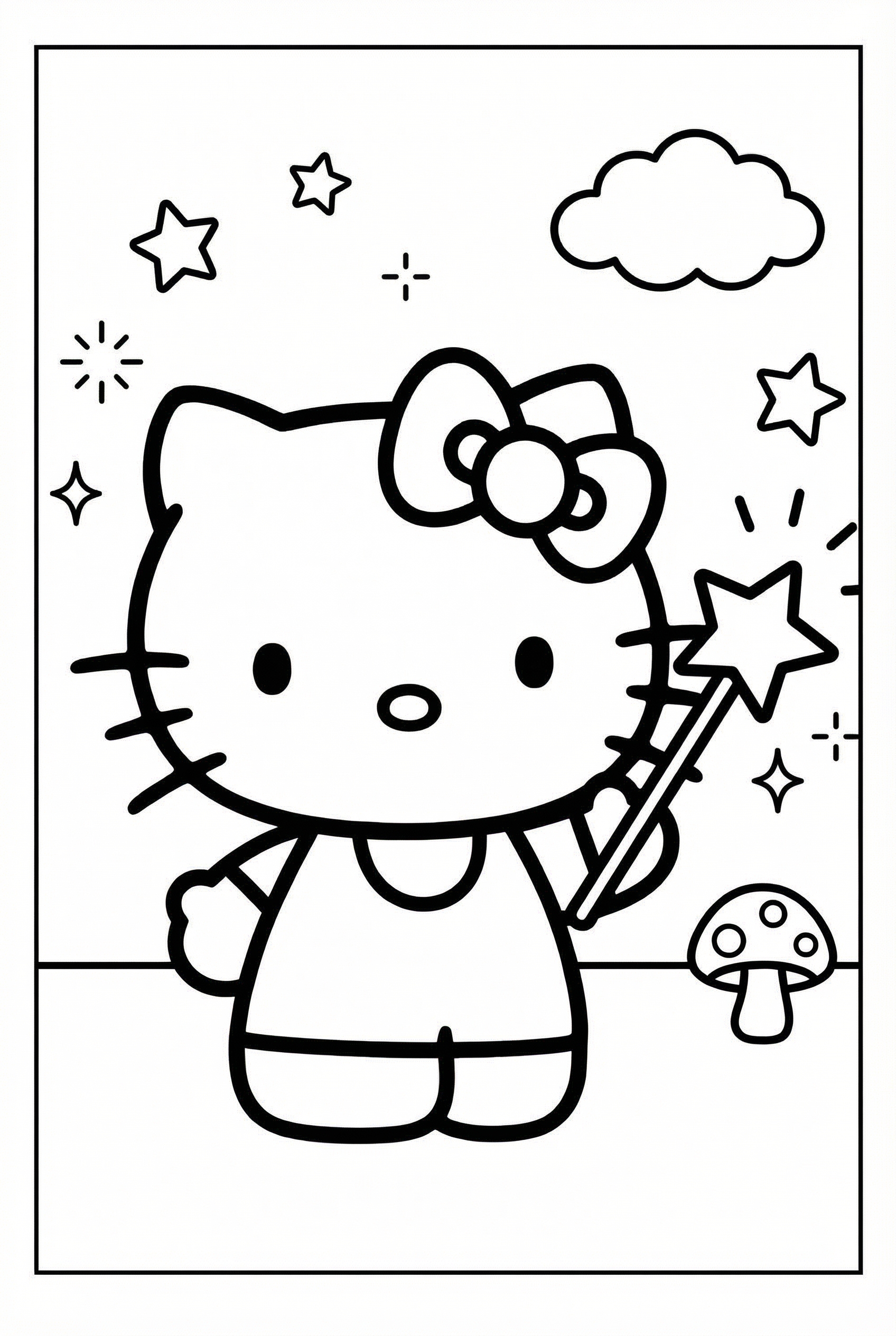 Hello Kitty with Magic Wand is a free printable coloring page from our Hello Kitty Coloring Pages collection. It’s suitable for kids ages 6-8 and can be downloaded as PDF or image directly at home. No account required — just click Download PDF or Download image above.