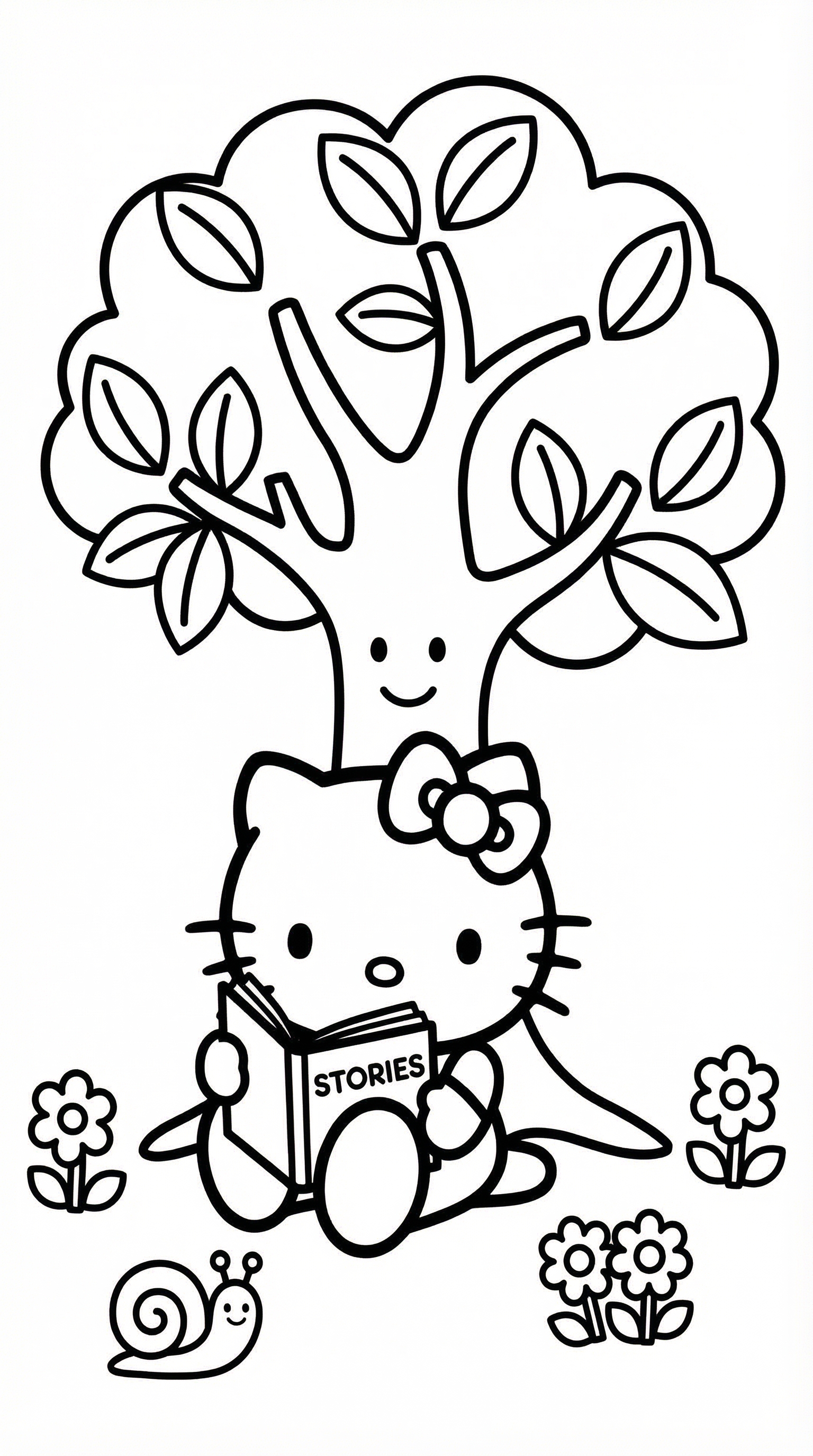 Hello Kitty Reading Under a Tree is a free printable coloring page from our Hello Kitty Coloring Pages collection. It’s suitable for kids ages 6-8 and can be downloaded as PDF or image directly at home. No account required — just click Download PDF or Download image above.