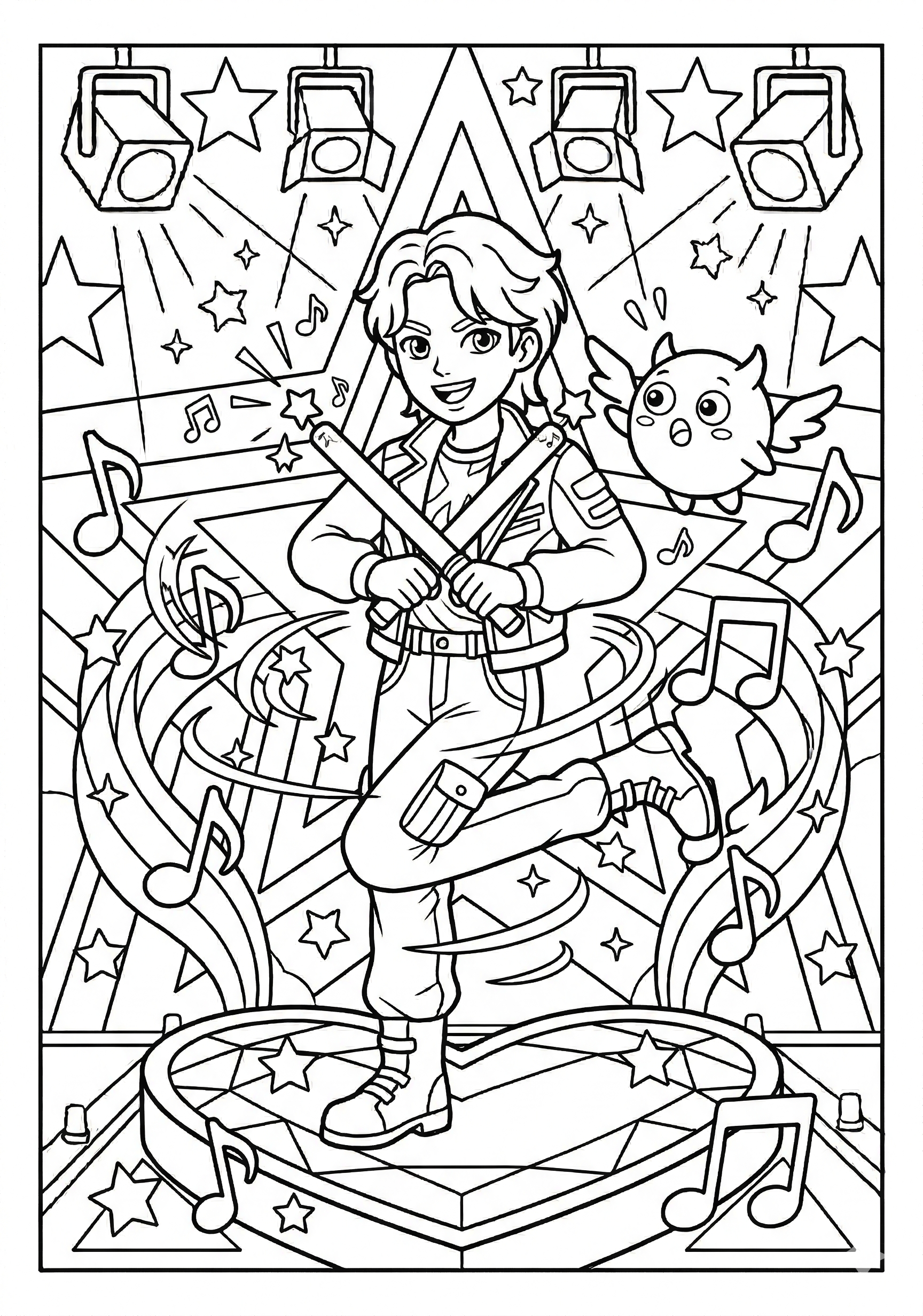 Kpop Demon Hunter with Glow Sticks is a free printable coloring page from our Kpop Demon Hunters Coloring Pages collection. It’s suitable for kids ages 6-8 and can be downloaded as PDF or image directly at home. No account required — just click Download PDF or Download image above.