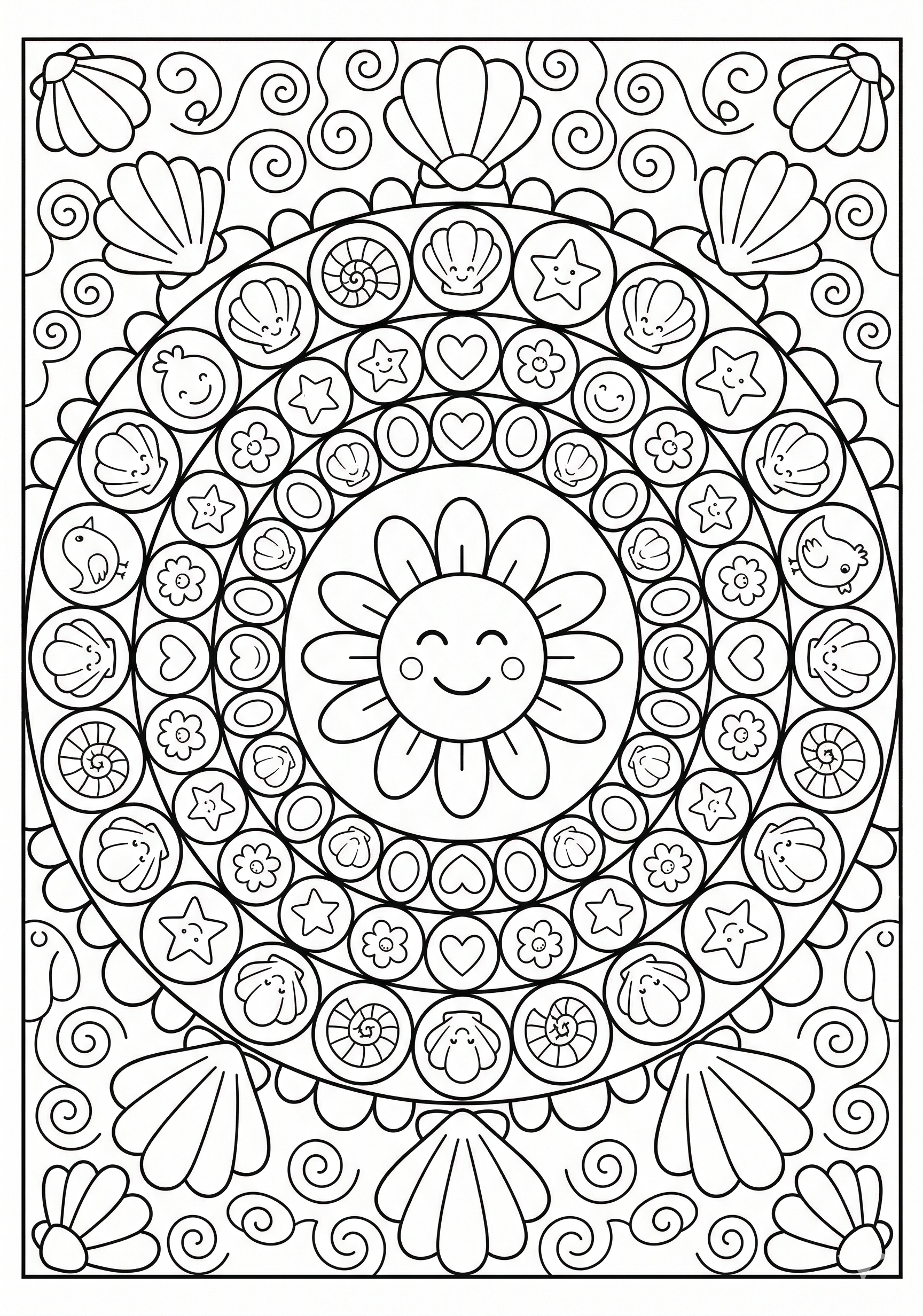 Shell Petal Circle Mandala Coloring Page is a free printable coloring page from our Mandala Coloring Pages collection. It’s suitable for kids ages 6-8 and can be downloaded as PDF or image directly at home. No account required — just click Download PDF or Download image above.