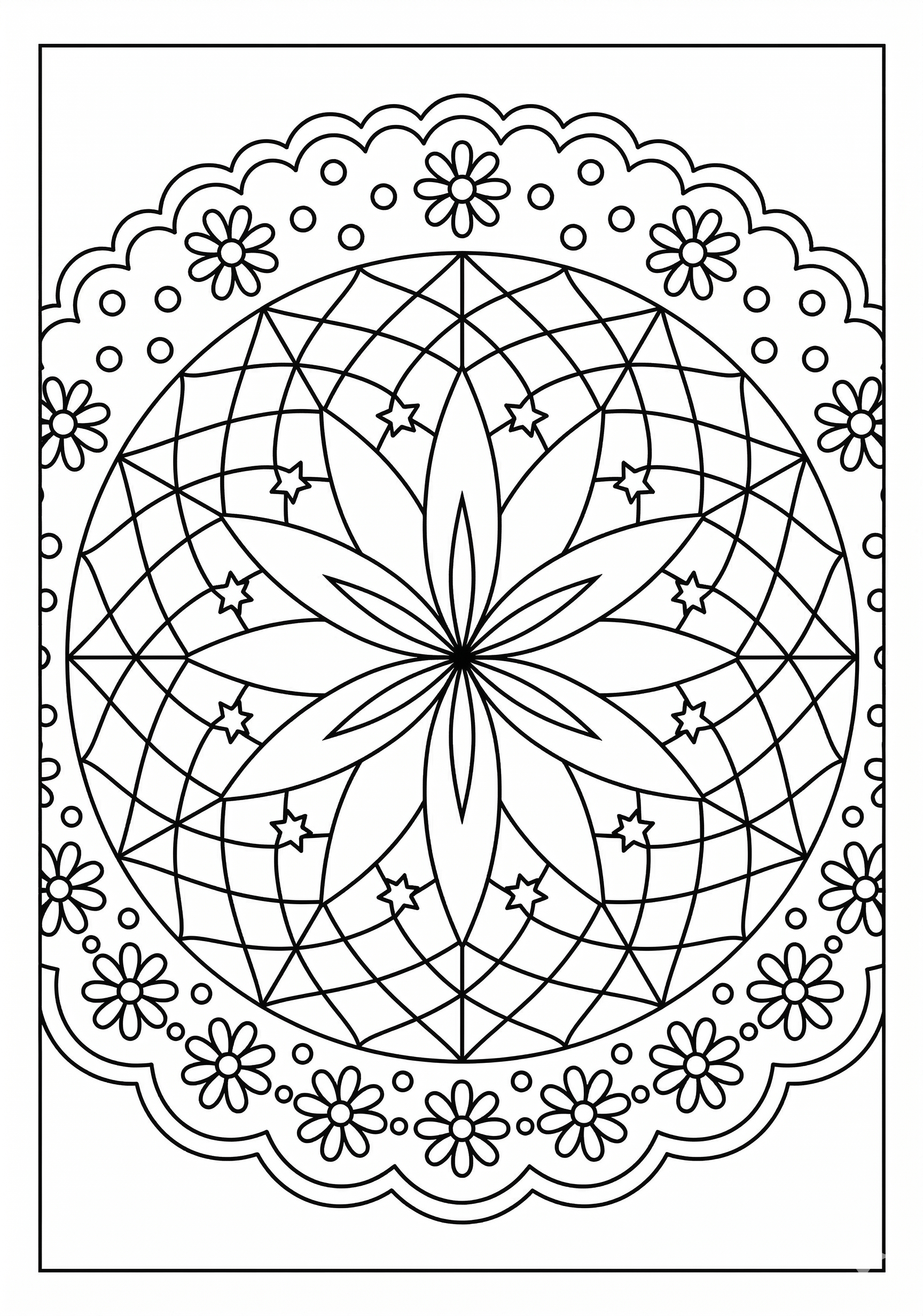 Starburst Flower Web Mandala Coloring Page is a free printable coloring page from our Mandala Coloring Pages collection. It’s suitable for kids ages 6-8 and can be downloaded as PDF or image directly at home. No account required — just click Download PDF or Download image above.