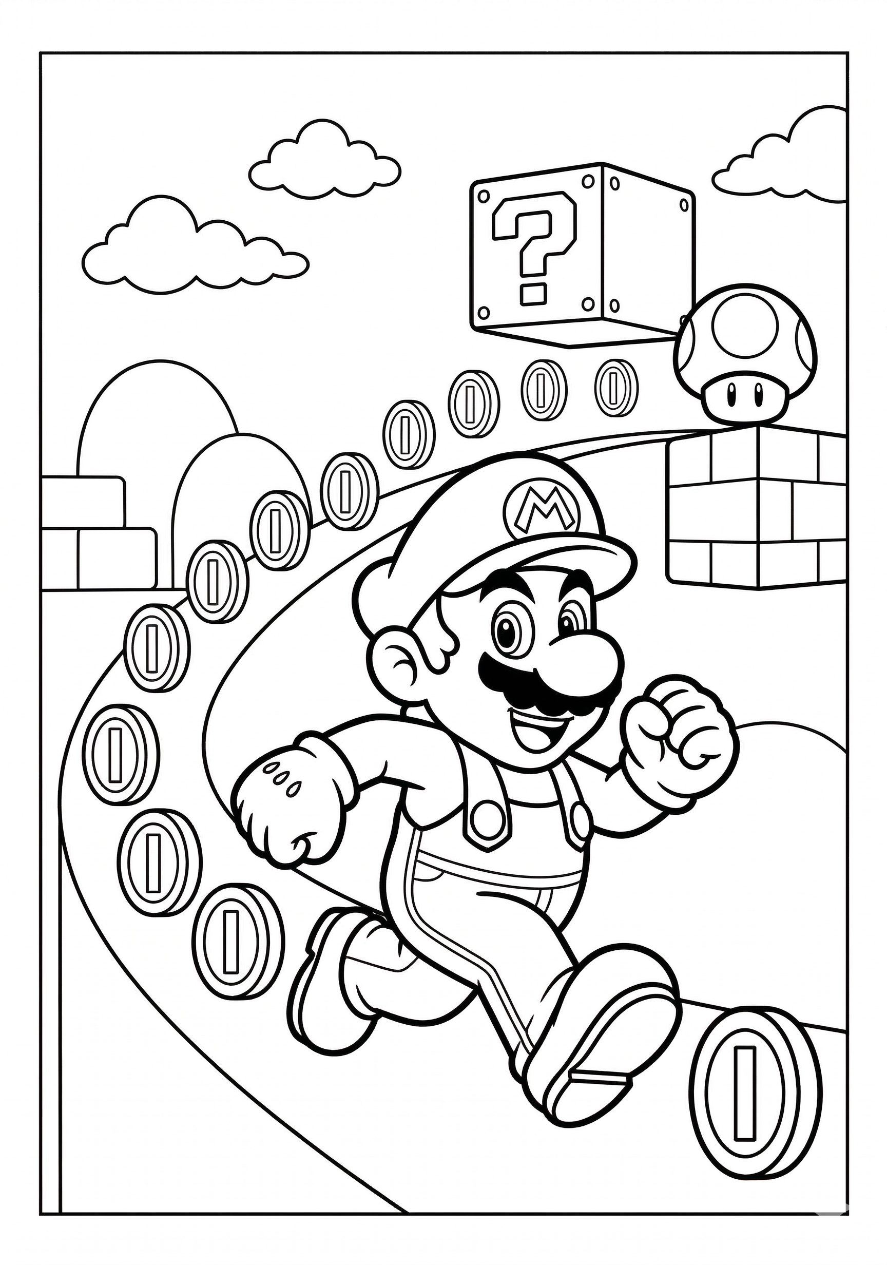 Mario Coin Trail Adventure Coloring Page is a free printable coloring page from our Mario Coloring Pages collection. It’s suitable for kids ages 6-8 and can be downloaded as PDF or image directly at home. No account required — just click Download PDF or Download image above.