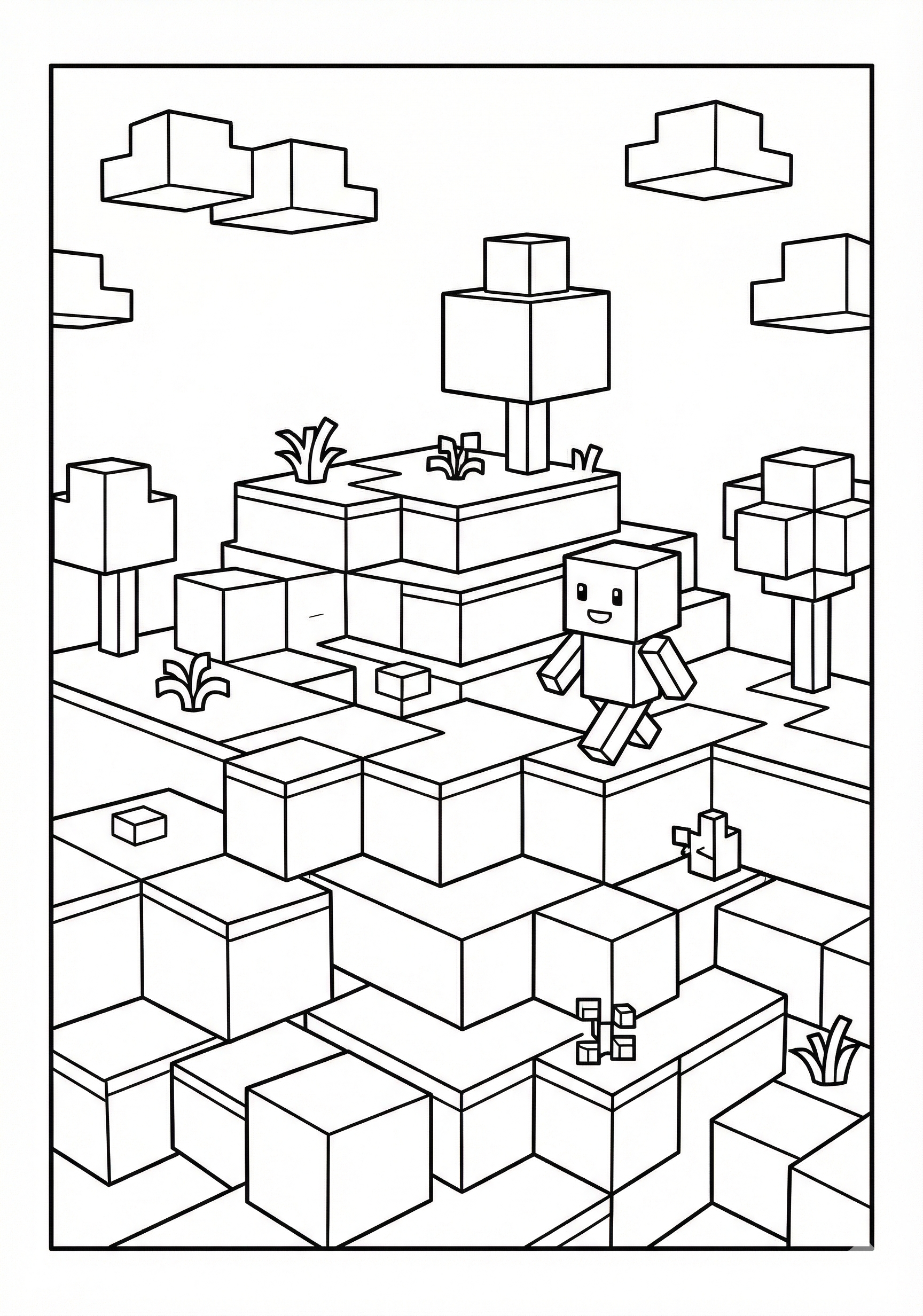 Layered Block Terrain is a free printable coloring page from our Minecraft Coloring Pages collection. It’s suitable for kids ages 6-8 and can be downloaded as PDF or image directly at home. No account required — just click Download PDF or Download image above.