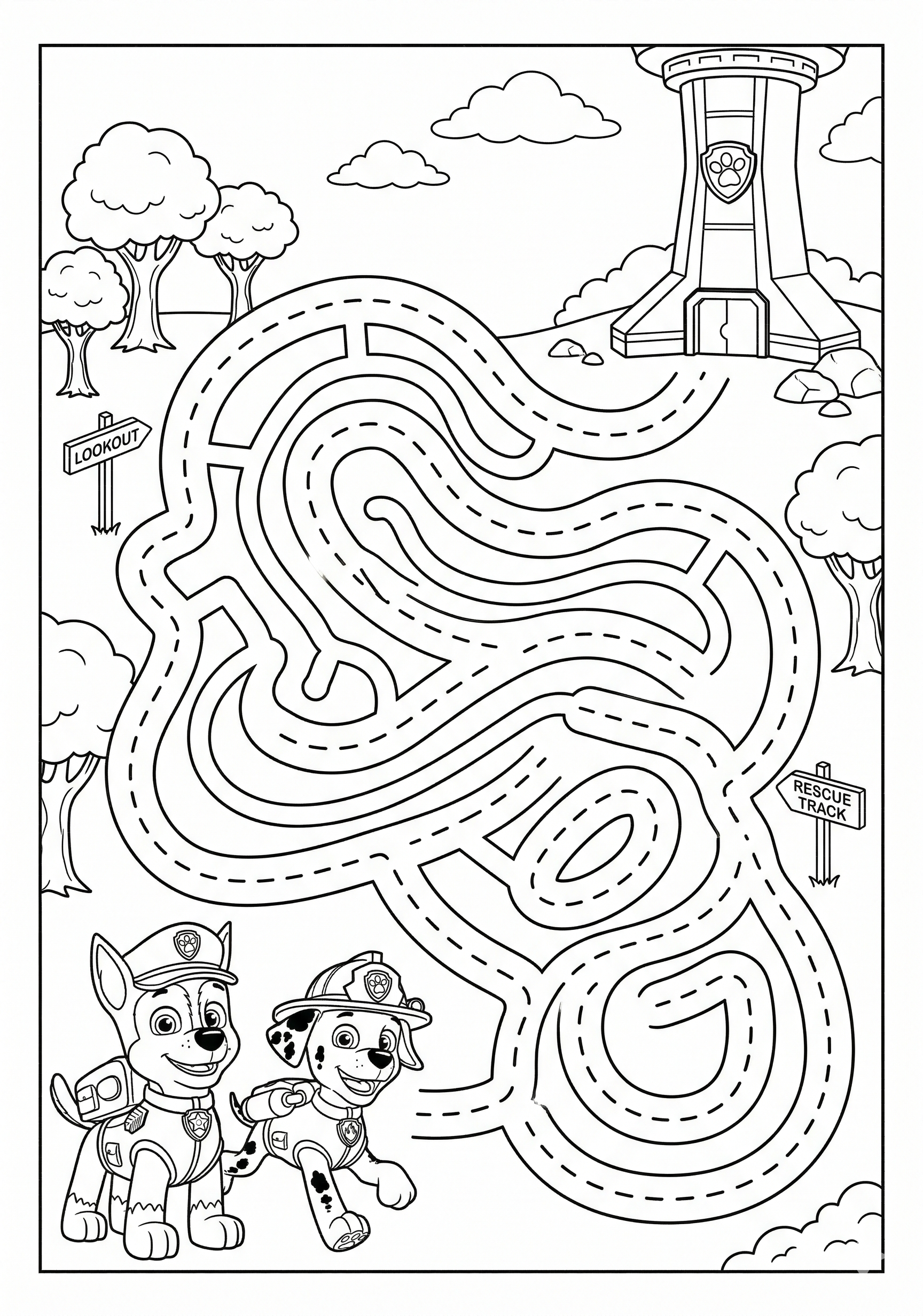 Pups and Simple Road Maze is a free printable coloring page from our Paw Patrol Coloring Pages collection. It’s suitable for kids ages 6-8 and can be downloaded as PDF or image directly at home. No account required — just click Download PDF or Download image above.