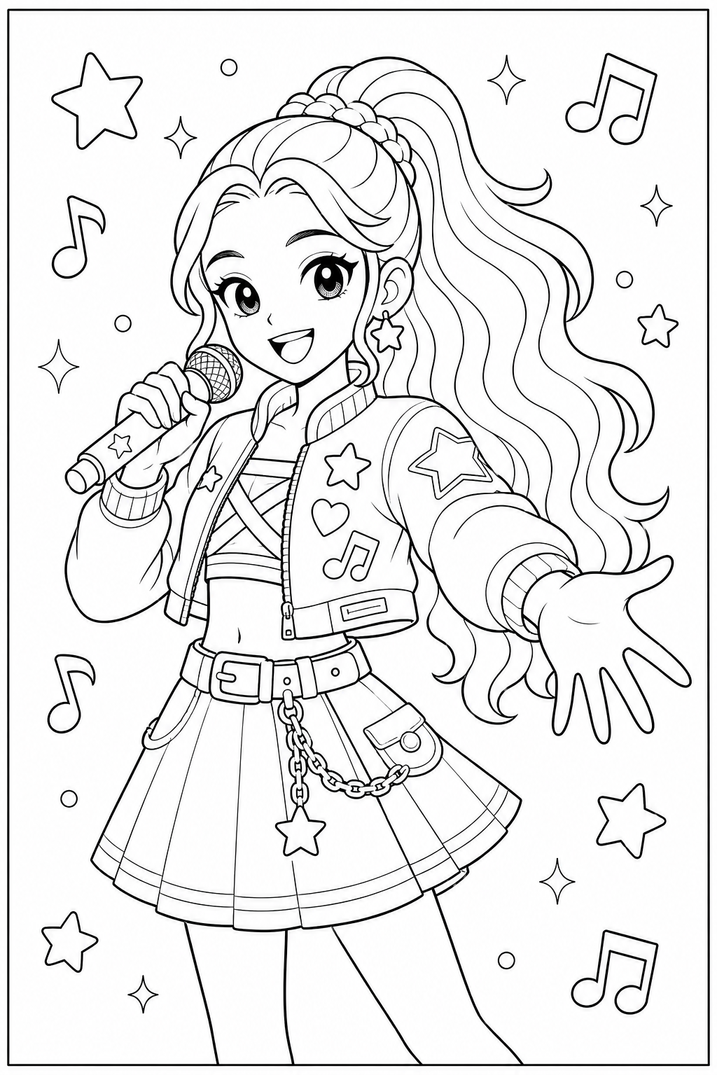 Rumi Idol Jacket Coloring Page is a free printable coloring page from our Rumi Coloring Pages collection. It’s suitable for kids ages 6-8 and can be downloaded as PDF or image directly at home. No account required — just click Download PDF or Download image above.