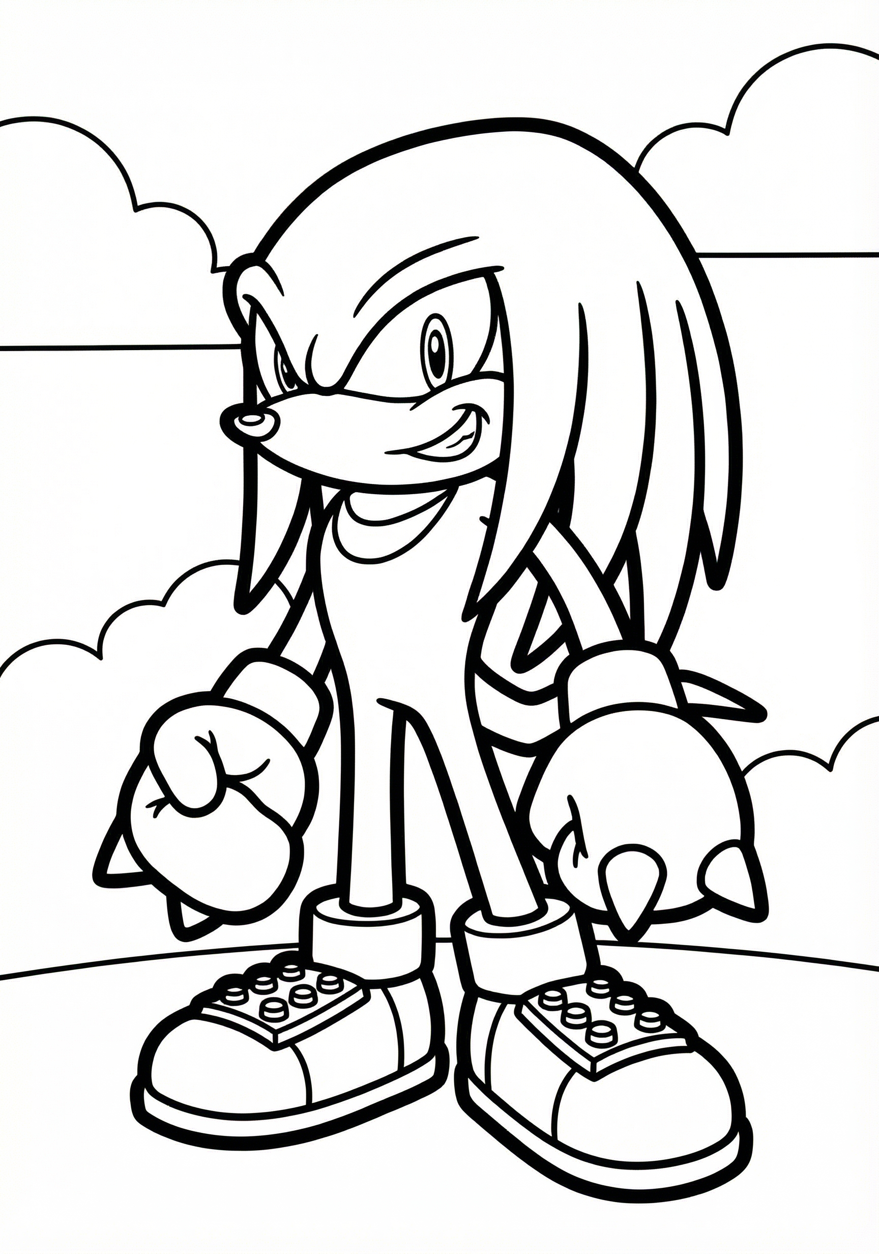 Knuckles Standing and Smiling is a free printable coloring page from our Sonic Coloring Pages collection. It’s suitable for kids ages 3-5 and can be downloaded as PDF or image directly at home. No account required — just click Download PDF or Download image above.
