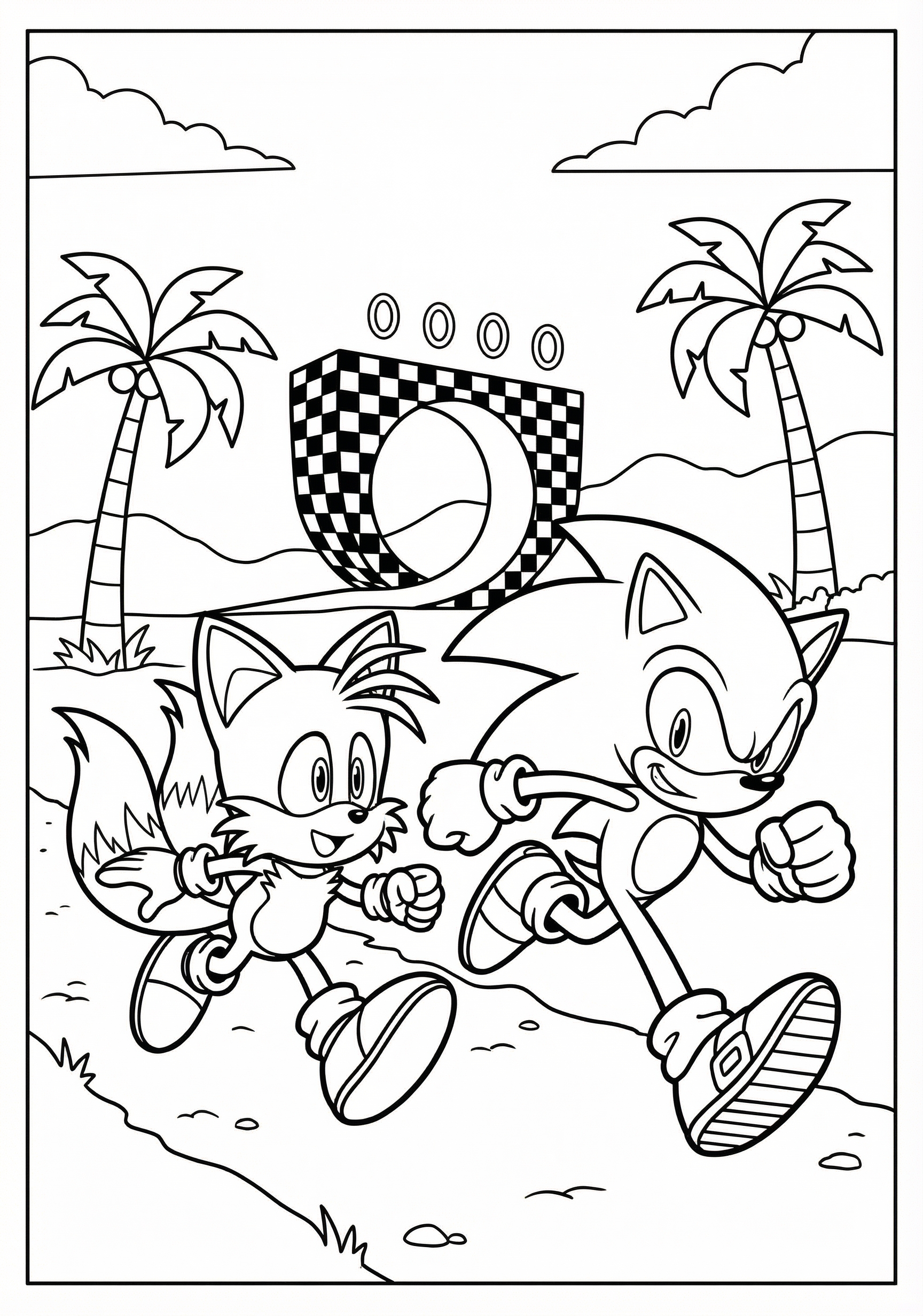 Sonic and Tails Running is a free printable coloring page from our Sonic Coloring Pages collection. It’s suitable for kids ages 6-8 and can be downloaded as PDF or image directly at home. No account required — just click Download PDF or Download image above.