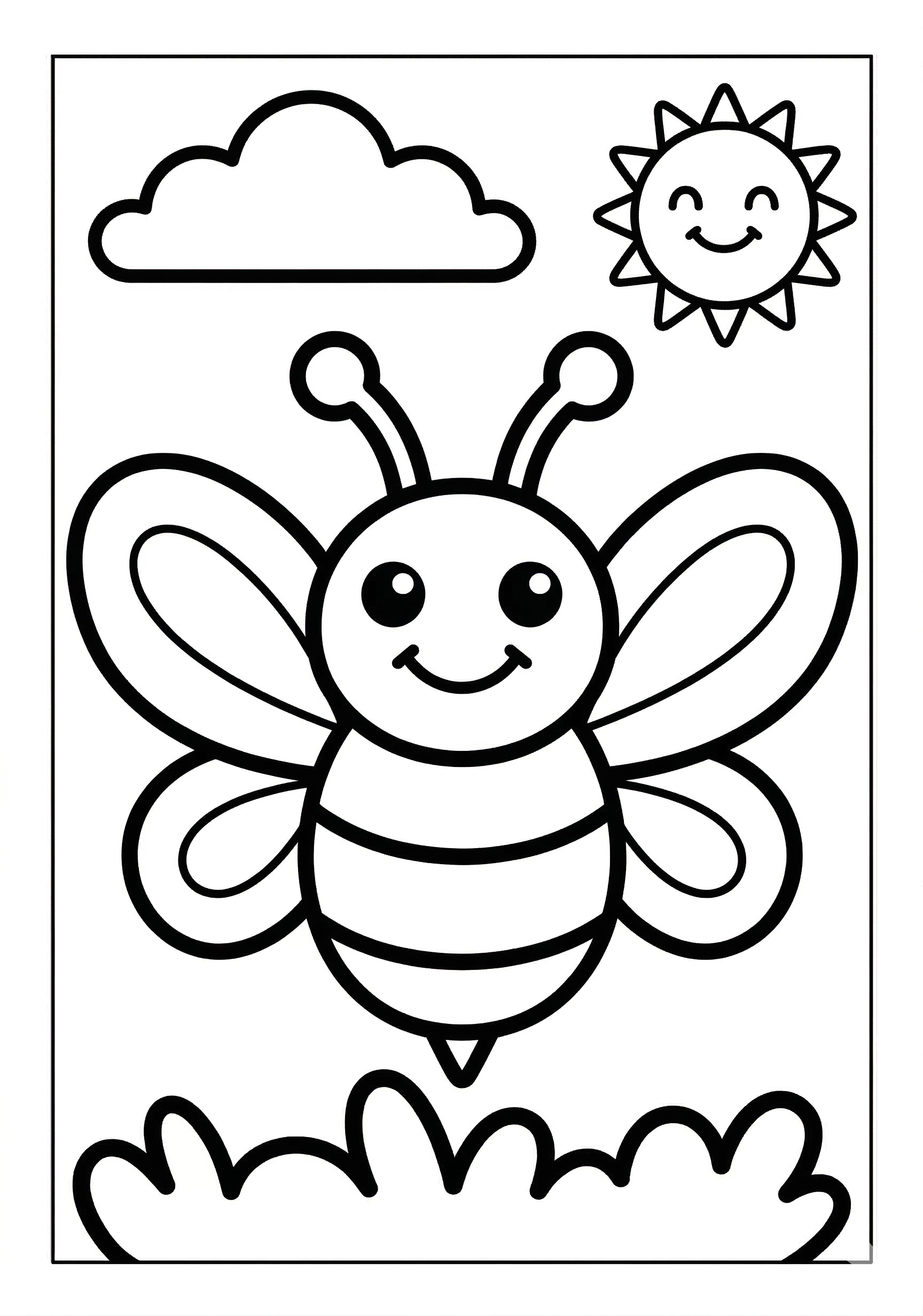 Simple Bee Coloring Page is a free printable coloring page from our Spring Coloring Pages collection. It’s suitable for kids ages 3-5 and can be downloaded as PDF or image directly at home. No account required — just click Download PDF or Download image above.
