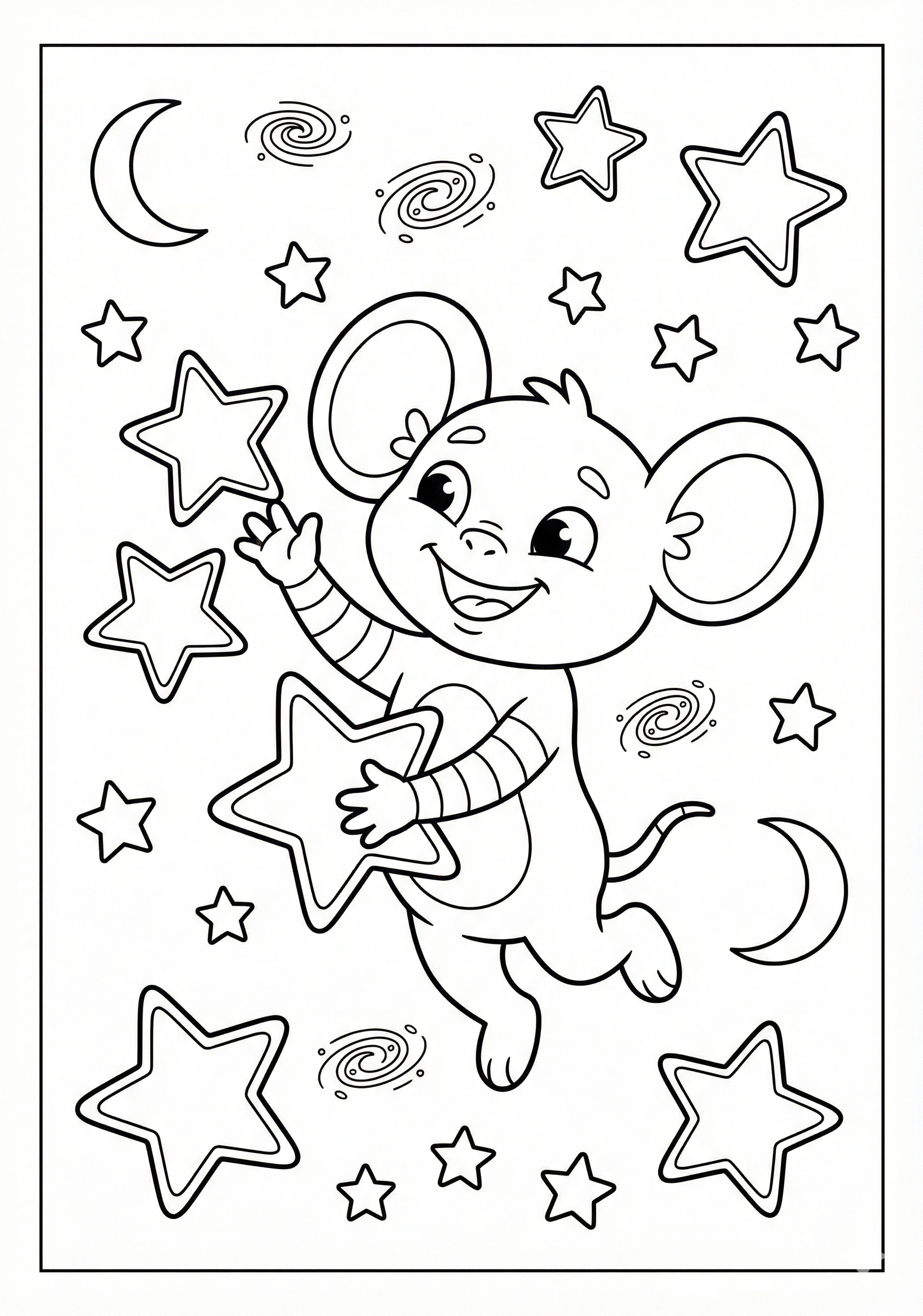 Alien Playing with Stars is a free printable coloring page from our Stitch Coloring Pages collection. It’s suitable for kids ages 6-8 and can be downloaded as PDF or image directly at home. No account required — just click Download PDF or Download image above.
