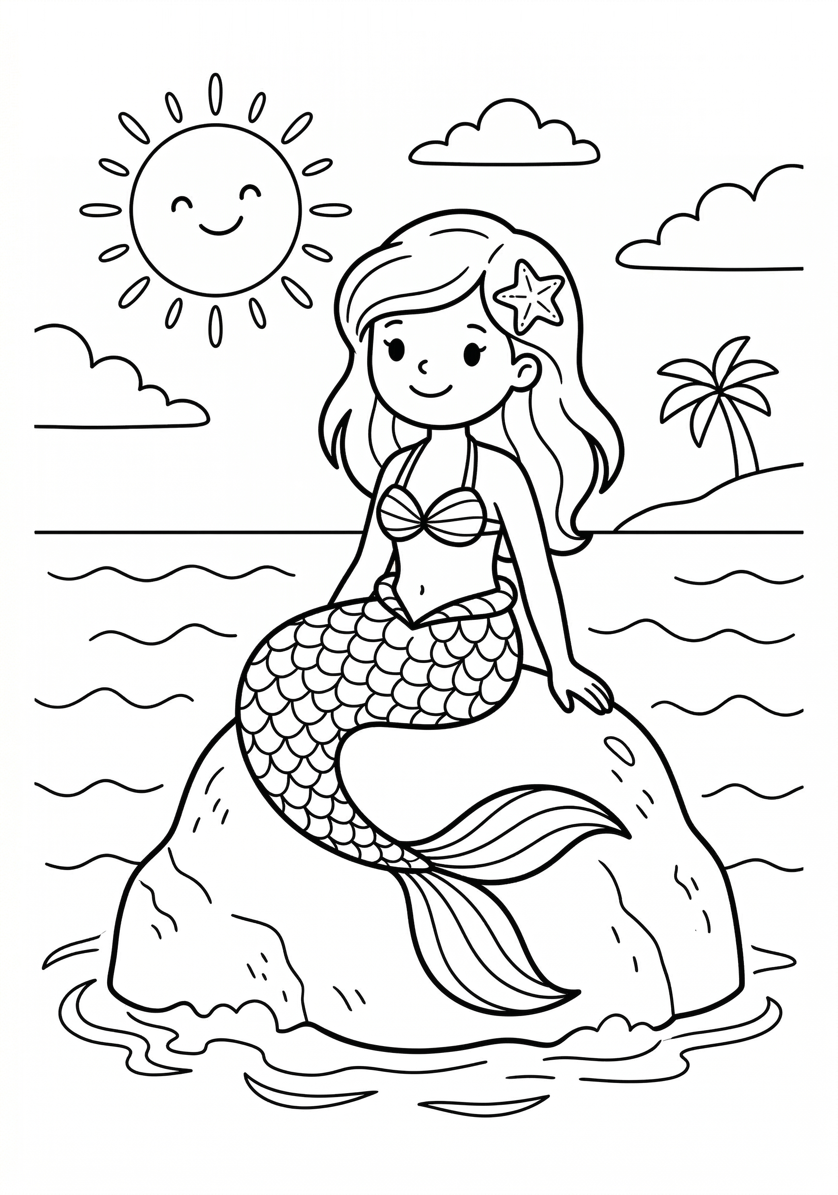Mermaid on Rock Coloring Page is a free printable coloring page from our Summer Coloring Pages collection. It’s suitable for kids ages 6-8 and can be downloaded as PDF or image directly at home. No account required — just click Download PDF or Download image above.
