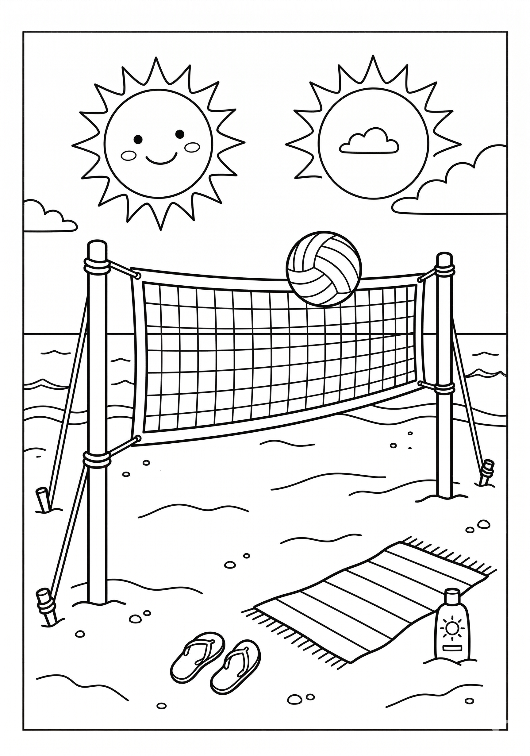 Beach Volleyball Coloring Page is a free printable coloring page from our Summer Coloring Pages collection. It’s suitable for kids ages 6-8 and can be downloaded as PDF or image directly at home. No account required — just click Download PDF or Download image above.